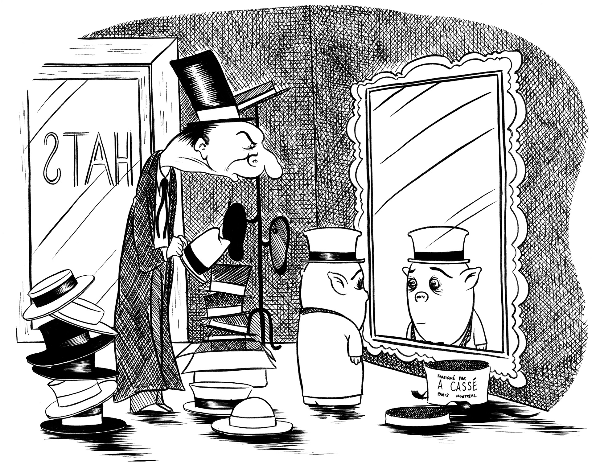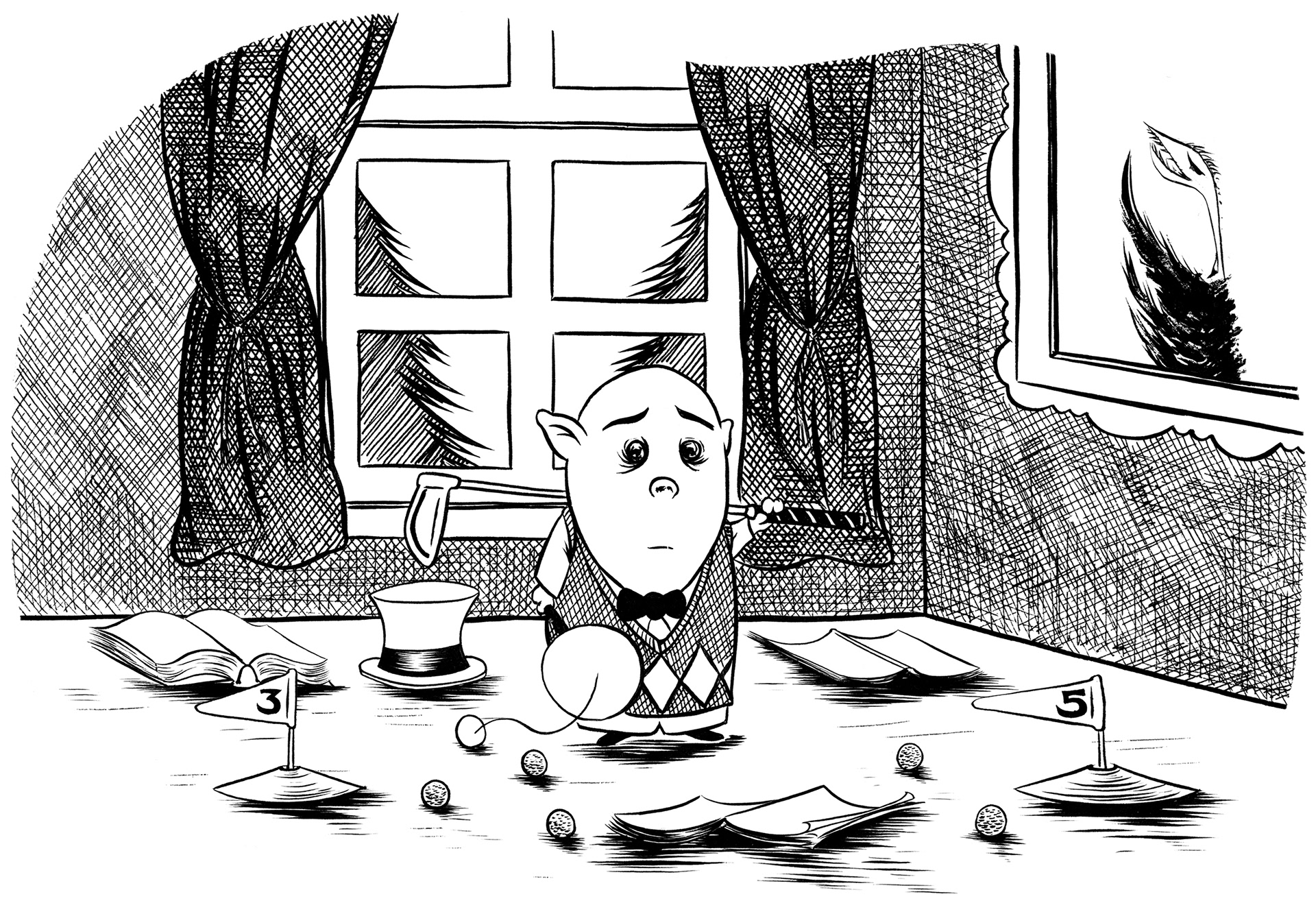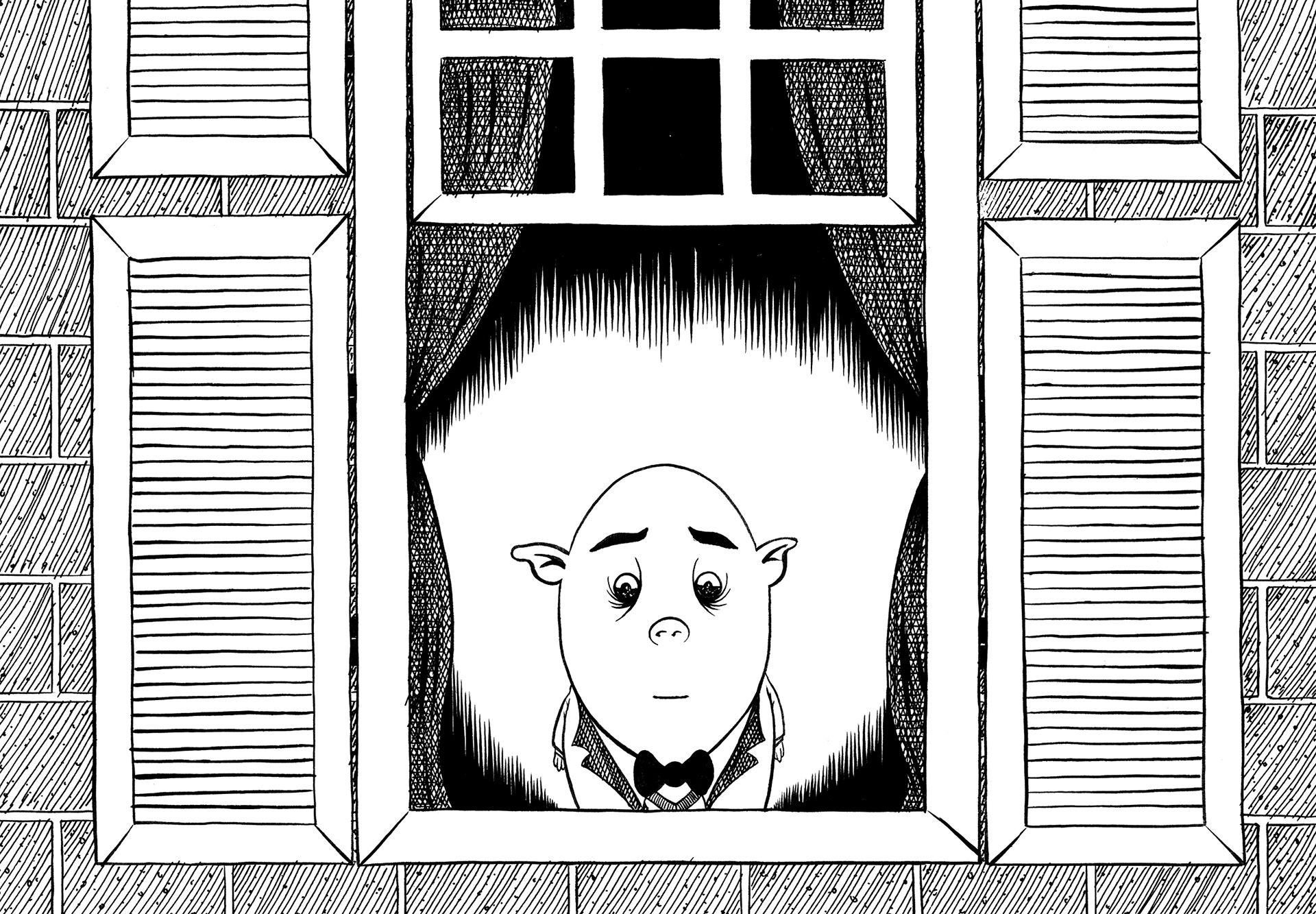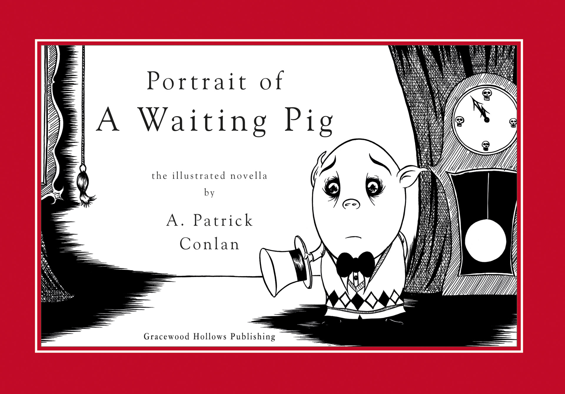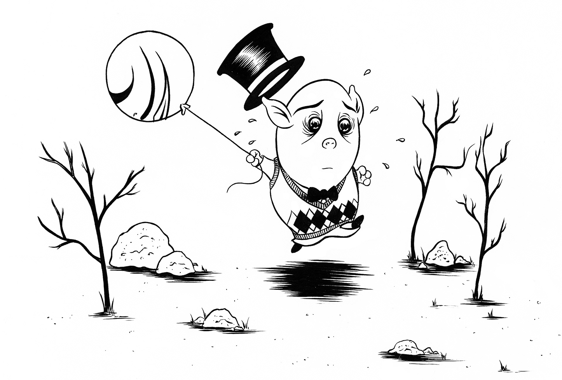 Black and white line art illustration for the digital version of The Waiting Pig.